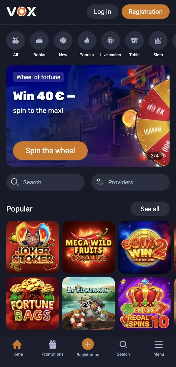 Viele Spieler starten mit einer Browser-Session und wechseln dann zur Vox App, nachdem sie gesehen haben, wie die Lobby aufgebaut ist. So oder so hast du Zugriff auf unsere komplette Spielbibliothek, inklusive Vox Spielautomaten, und kannst EUR-Einzahlungen sowie Auszahlungen über dieselbe Kasse verwalten. Wenn du jemals inoffizielle Seiten siehst, die behaupten, ein “Casino Vox”-Partner zu sein, meide sie und kehre zu unserer offiziellen Domain zurück.